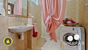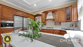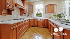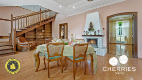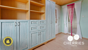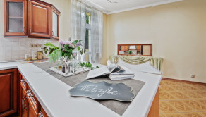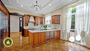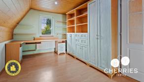 Kuchyňa bola vyrobená z kvalitného dreva v prestížnej firme Hanák, typ Loretta, čerešňa. Z obývačky sa vychádza na poschodie mohutným dreveným